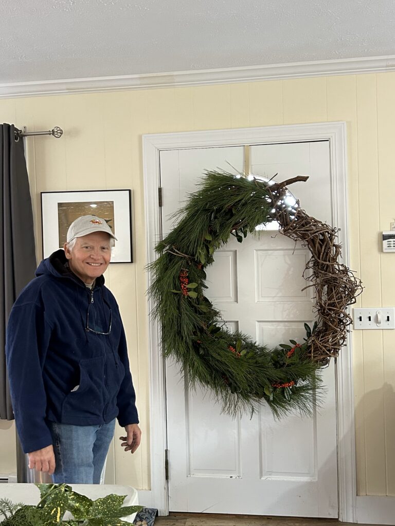 Ralph Nolletti (right), a member of the Outreach & Membership Committee, hand-made, donated and decorated a grapevine wreath that would look stunning on the side of a barn or house. The wreath measures over 36" in diameter.