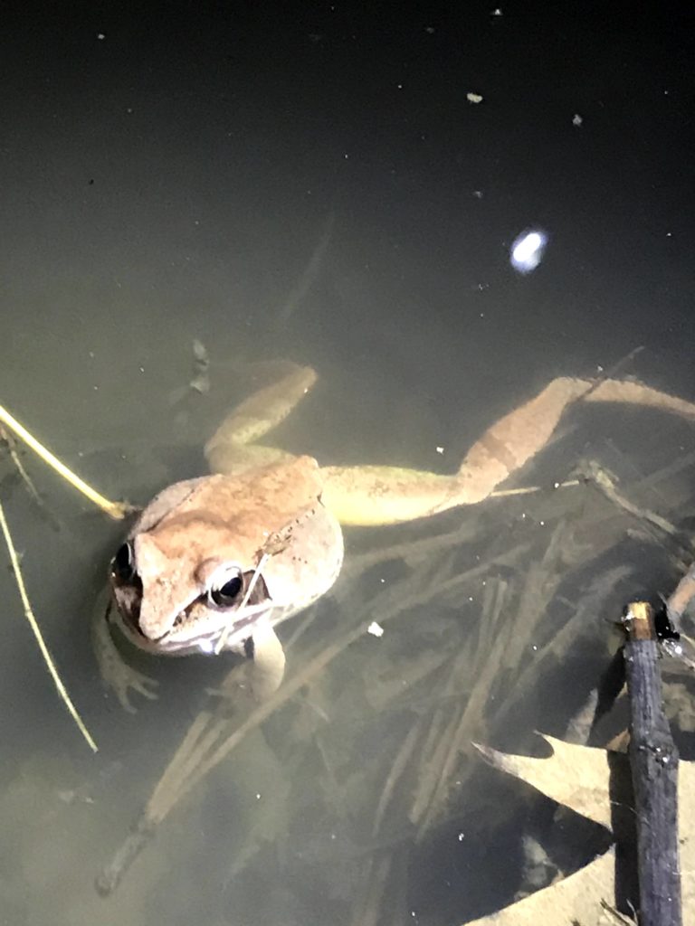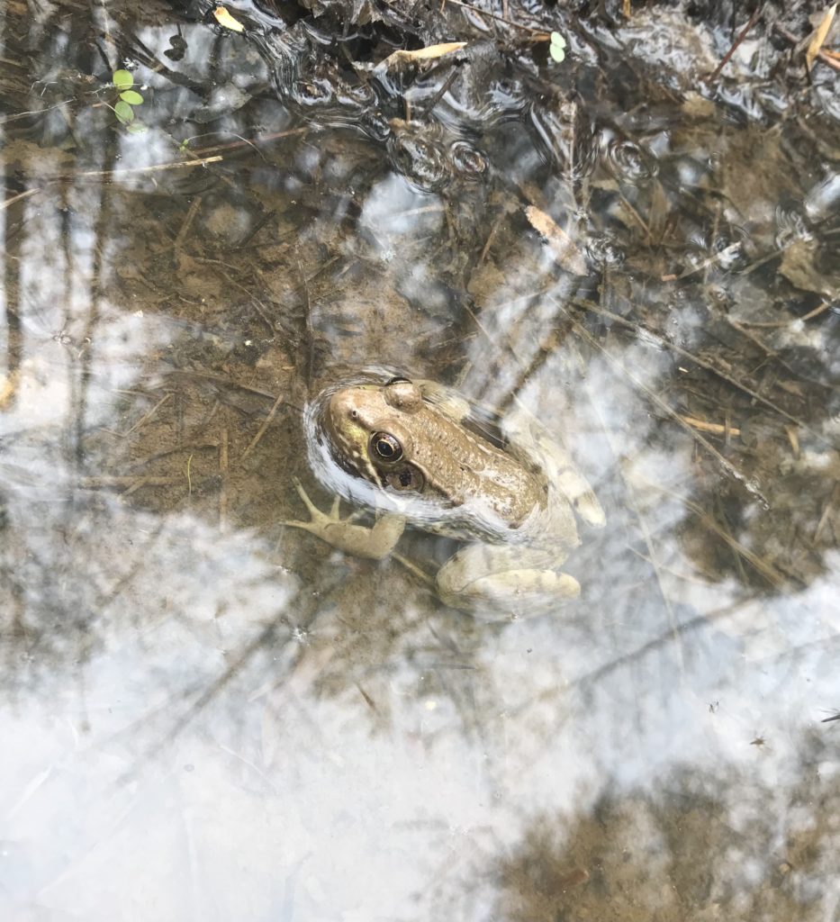 The prevalence of these wonderful animals is great news for the Parkers Creek watershed! Not only do they take care of bothersome insects, but frogs are also considered indicator species, so their presence “indicates” the health of an ecosystem. While they have lungs, frogs can also breathe through their skin (and therefore breathe while underwater), allowing them to have added protection from terrestrial predators and to hibernate undisturbed in aquatic environments. However, breathing through their skin also makes frogs especially susceptible to harmful pollutants since they may also absorb unwanted chemicals or diseases. The Parkers Creek watershed appears quite healthy since our frog populations are not suffering from contaminants and are instead thriving and growing!