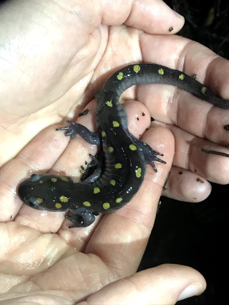 Through these monitoring efforts and from periodic visual observation (including the amazing Master Naturalist herp hunt on March 24th), we have seen a lot of species in ACLT’s vernal pools. Spring peepers, wood frogs, green frogs, and southern leopard frogs have been out and about, as have other amphibians like spotted salamanders and eastern newts! While the two manmade vernal pools I constructed last month (with LOTS of help from some amazing volunteers) have yet to have any breeding amphibians, recent rains filled the pools, and some insects and a spring peeper have moved in. Soon, these pools should be teeming with life, just like nearby natural areas!