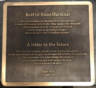 The plaque pictured, placed in April of 2019 at the location of Okjökull, reads in English and Icelandic “Ok is the first Icelandic glacier to lose its status as a glacier. In the next 200 years, all our glaciers are expected to follow the same path. This monument is to acknowledge that we know what is happening and know what needs to be done. Only you know if we did it”. The plaque also lists the CO2 level in the atmosphere at that time, at 415 ppm, which is already over 100 ppm above the average CO2 levels we have on record in the last 800 thousand years before present. Our current yearly global average for 2019 is 411 ppm.